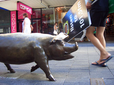 achtung, achtung... dies ist der definitiv letzte beitrag aus australien. wir sind nun, nach unserer rundreise, wieder in melbourne, den ausgangspunkt aller expeditionen und abenteuer, angekommen. wir schreiben das jahr 2008 (12.03). morgen werden wir dann schliesslich den weiten weg über den äquator in heimische gefilde antretten, wo wir, wie wir hoffen, von unseren geliebten daheimgebliebenen mit sehnsucht erwartet werden (hoffentlich auch mit much beer, aber bitte nicht die plürre die man hier kaufen kann). ansonsten hoffen wir nur, dass wir es mit all dem zeug was wir in den taschen haben, es über die grenze schaffen werden. vor allem wegen womad (ein kurzes wombat, oder besser ein wombat mit kurzen beinen). nun ja, das soll aber heut noch nicht unsere sorge sein, für euch zu hause nochmal etwas fürs auge, für uns (vor allem für mich, klaus) nochmal was für die kehle ...